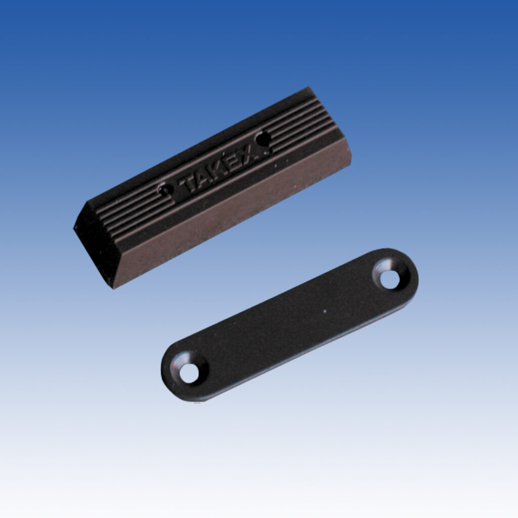 ドアや窓などの開閉部分に取り付ける事で、警戒中に開けると検知します。こちらは有線で稼働するマグネットスイッチです。