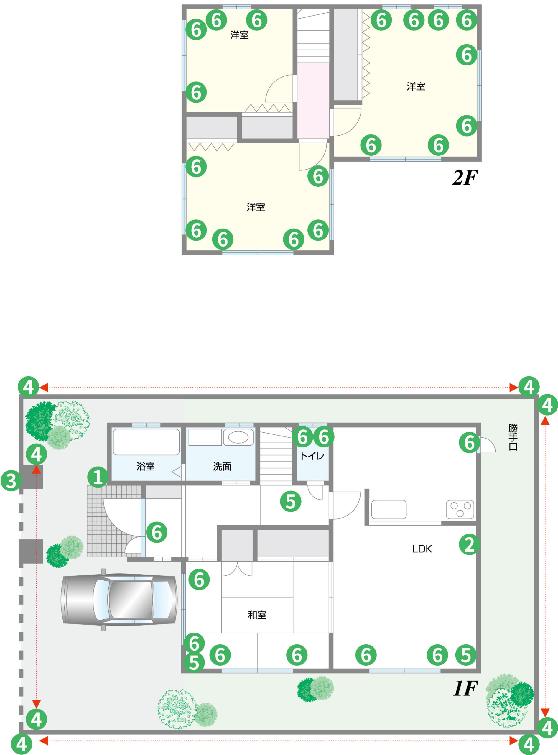 一戸建て住宅のホームセキュリティ機器設置例これだけは最低揃えていただきたい、防犯・防災の基本プランです。